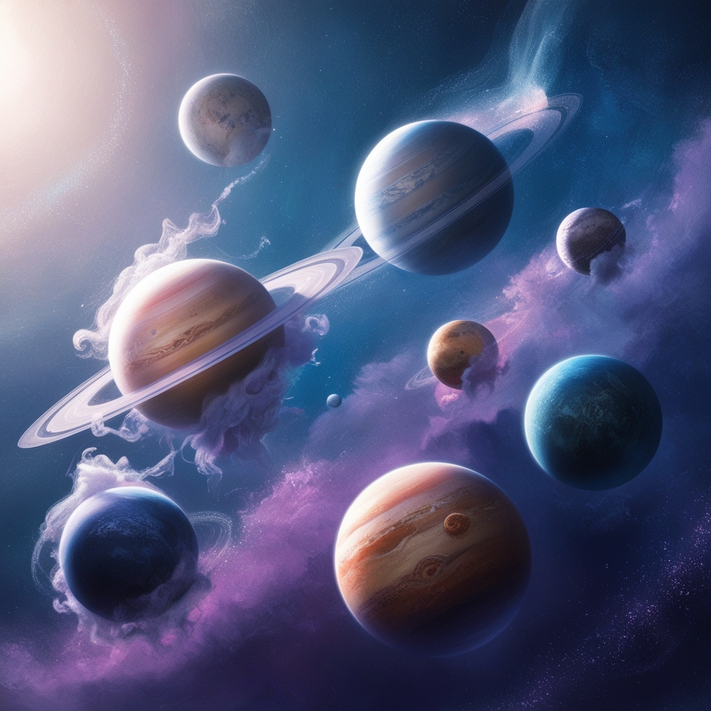- Ensuite, les grandes planètes gazeuses (Jupiter, Saturne, Uranus, Neptune). Elles possèdent aussi de nombreux satellites naturels.
