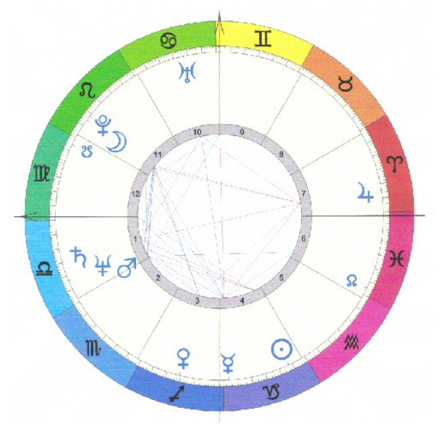 Pour mieux résumer les croyances de l’astrologie moderne, regardons l’allure d’un thème astral typique :